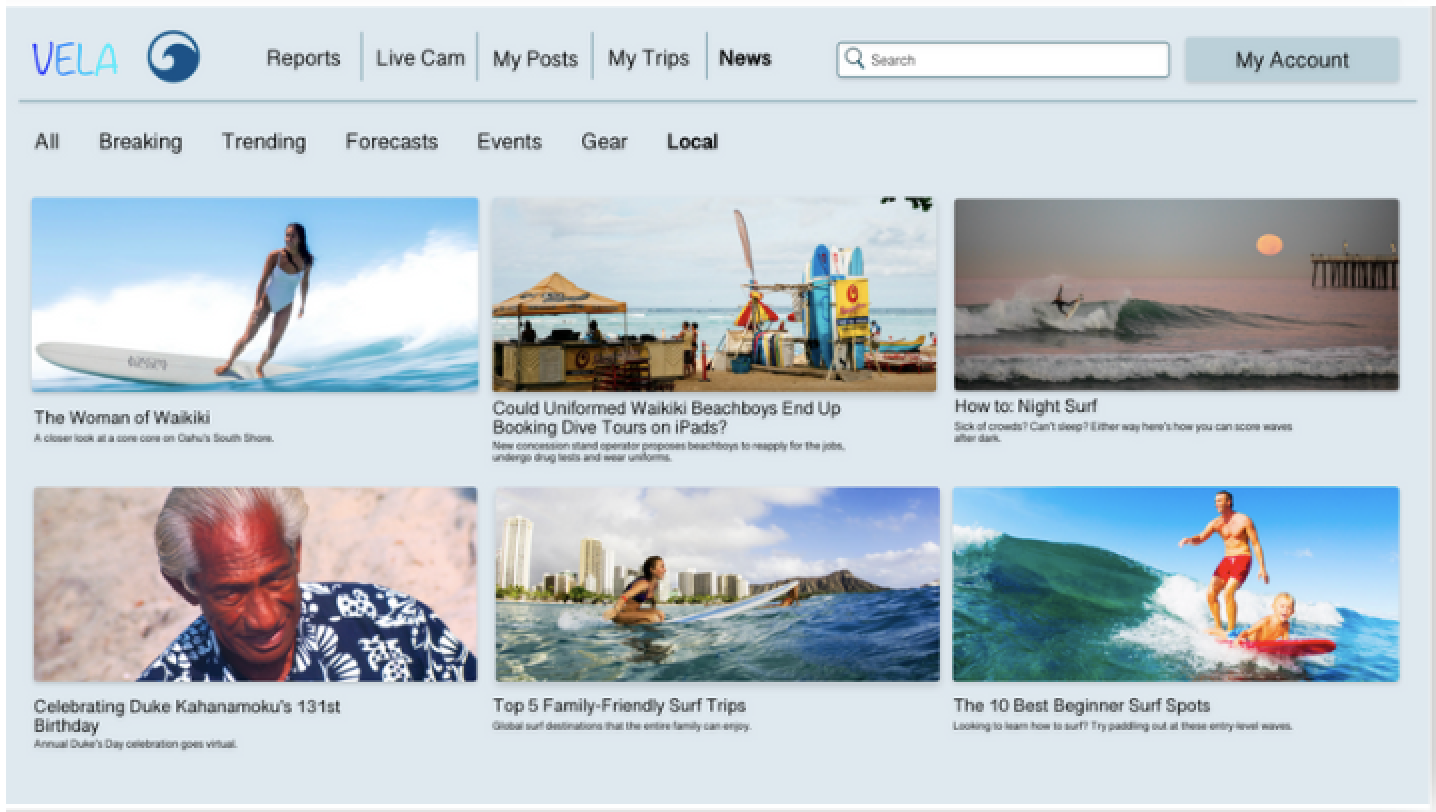 I love the news section. Surfers love to read about other surfers. We love to connect ourselves to the community, and being able to read articles about places we’ve surfed/will surf is a great way to do that.