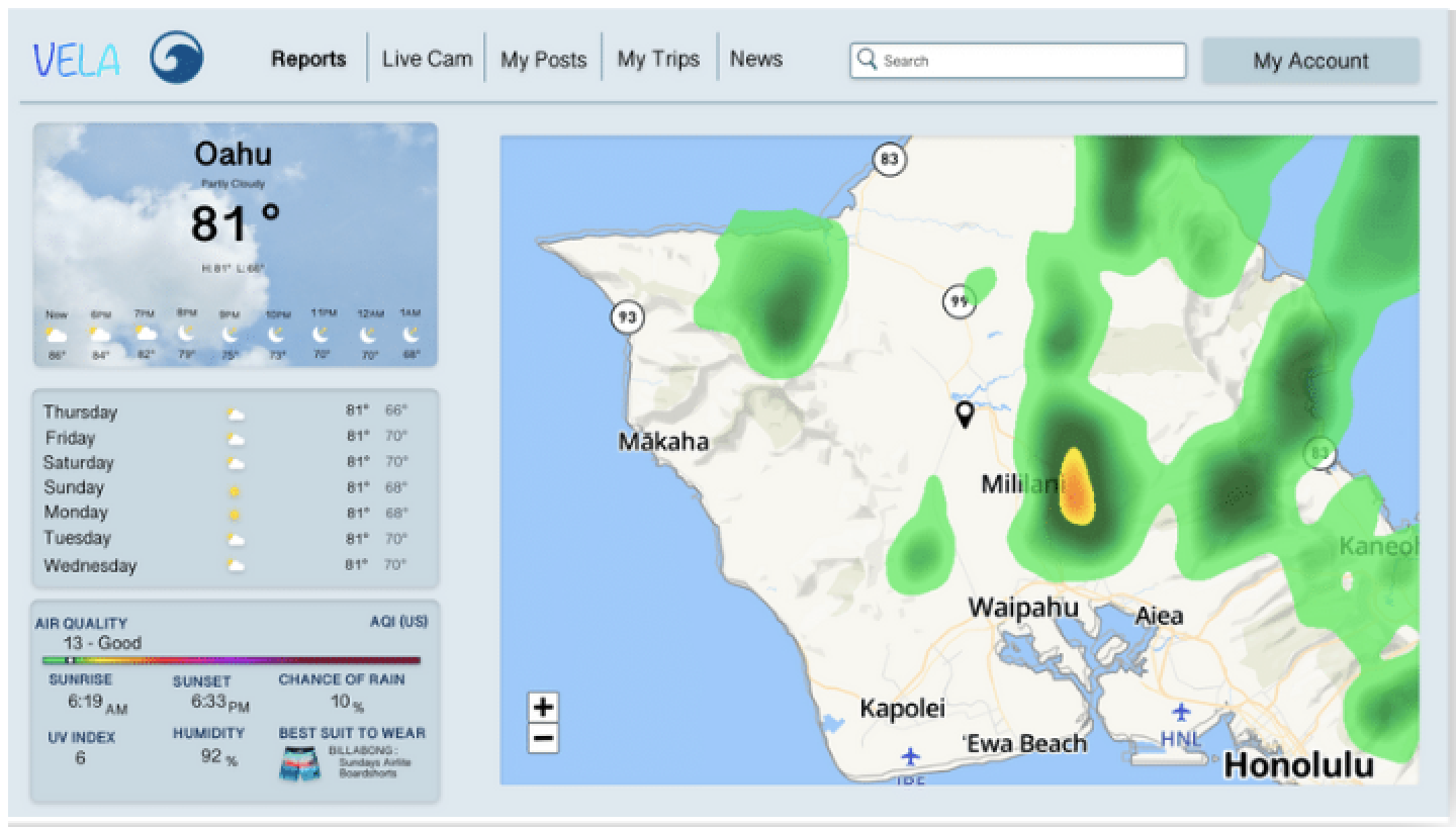 It’s a weather and surf app that shows current and future predictions.